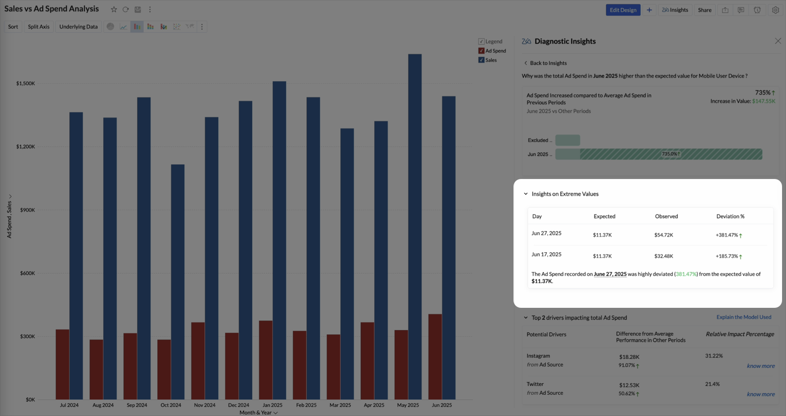 We've taken Key Driver Analysis a step further with Extreme Value Insights, a smarter way to detect outliers that drive significant changes in the target metric.