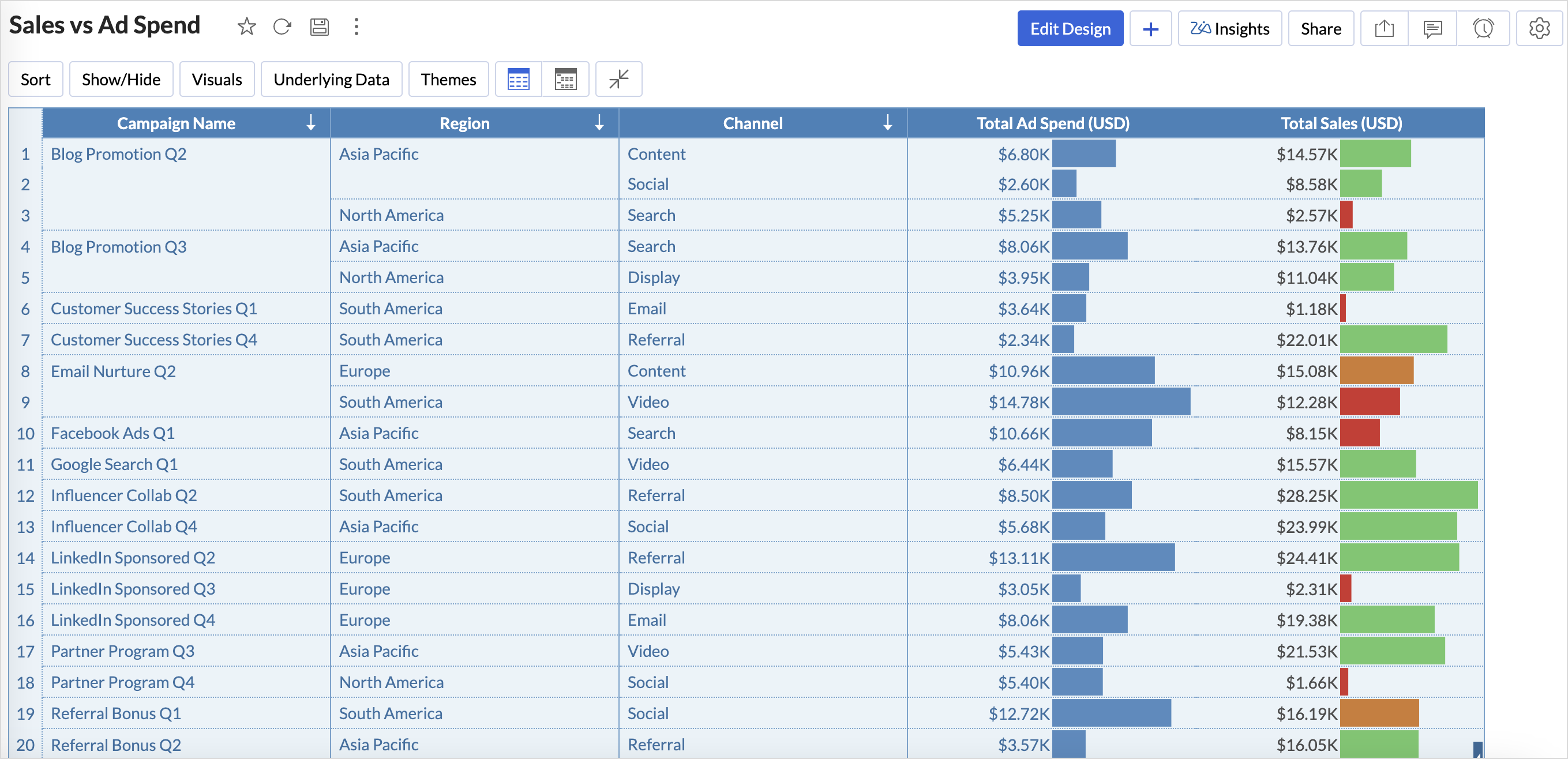 - Visualize Trends: See patterns and performance variations directly in Data Bars.