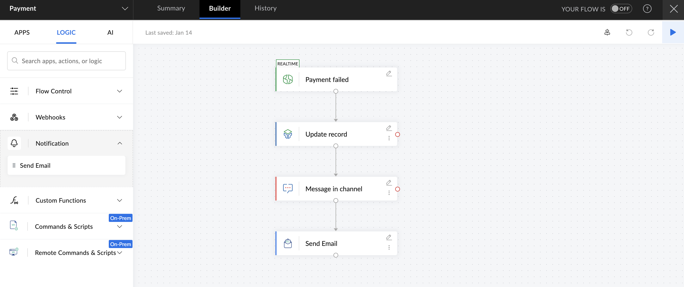 It's as important to keep internal teams informed about payment activities as it is to notify customers. Finance, sales, and operations teams need real-time visibility into payment completion, delay, or failure to take immediate action. Relying on manual updates for every payment becomes tiresome in the long run. Setting up automated workflows that trigger for different payment statuses helps teams stay instantly informed.