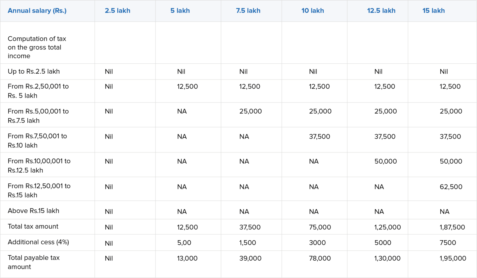 Employees’ tax slab and tax percentage are classified by factors including the income earned and the individual’s age. The lower the income, the lower the tax liability. Employees earning less than 5 lakh per annum are fully exempt from taxes by rebate. Throughout this article, we will look at the calculations for salaried employees whose age is less than 60.