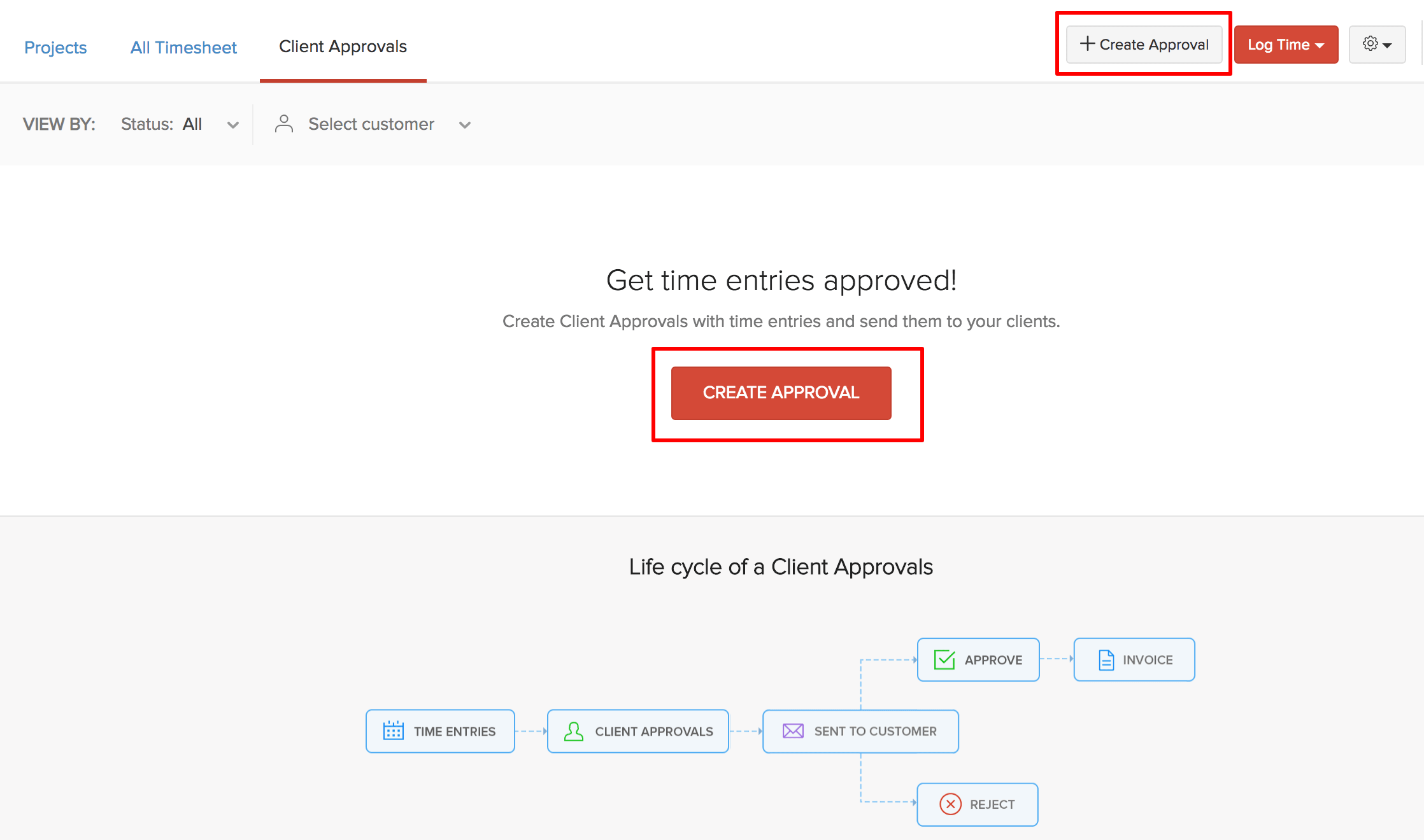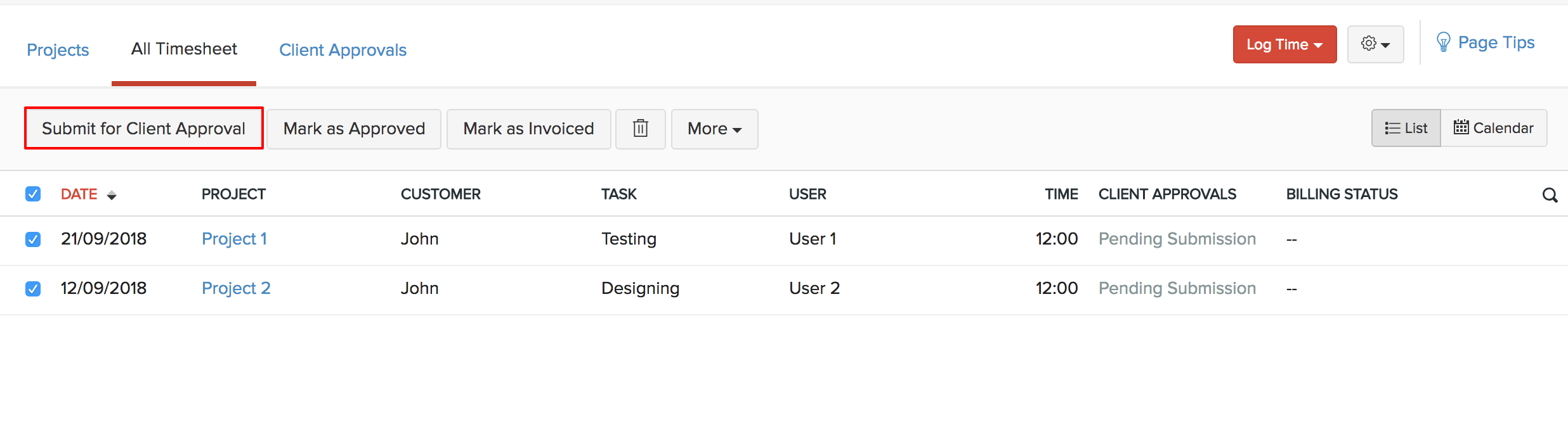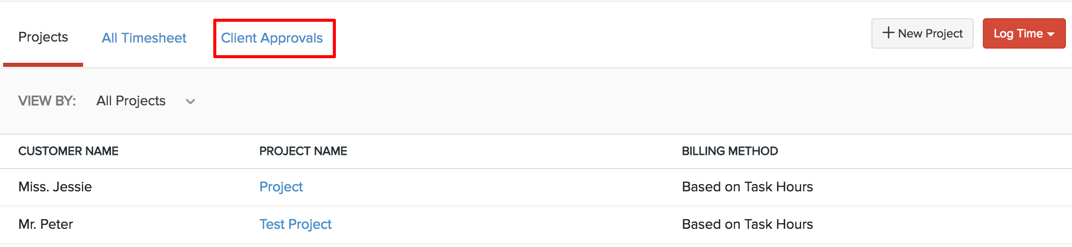 Once you enable the Client Approval option, a tab named Client Approvals will appear in the Timesheets module.