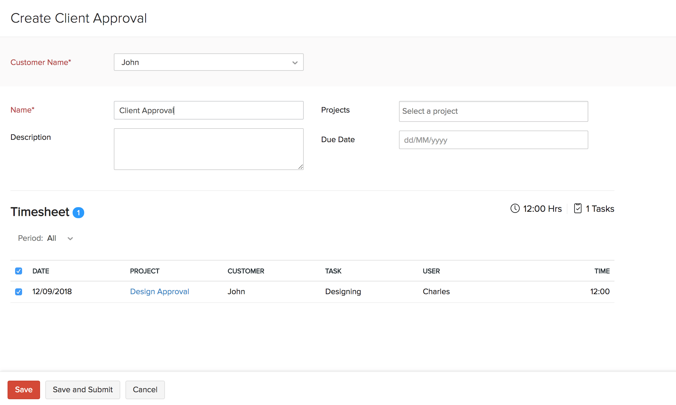 - From the Customer Name field, choose the customer for whom you’re creating the client approval.
