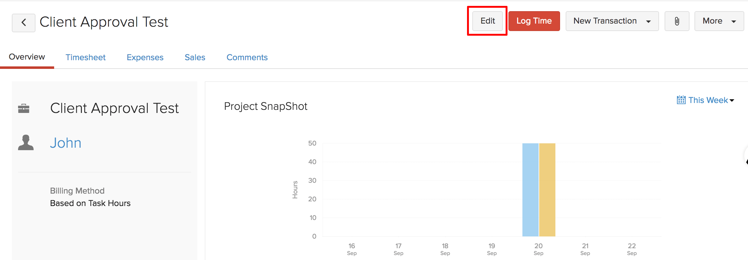- Check the box next to Enable Client Approval for the time entries of this project and click the Save button.