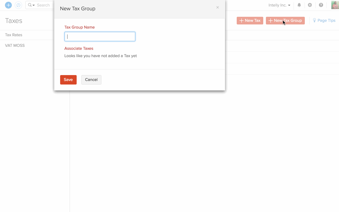 - Click the gear icon on the top right corner of the page and choose Taxes.