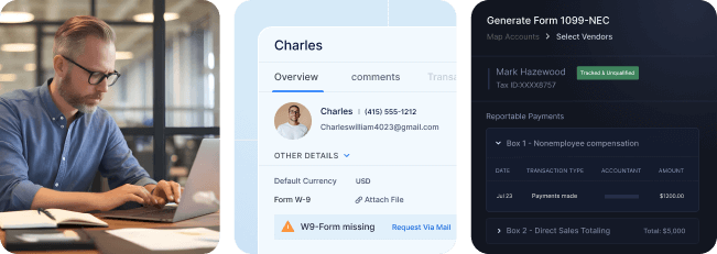 Stay updated on your 1099-tracked vendor payments and automatically generate a list of vendors who meet IRS reporting thresholds. Gain access to a clear view of each vendor’s reportable and non-reportable payments, all in one place.