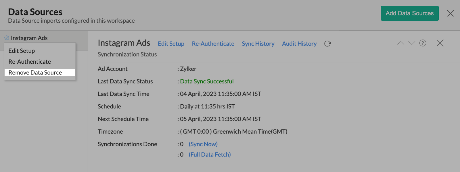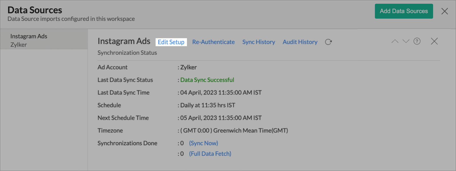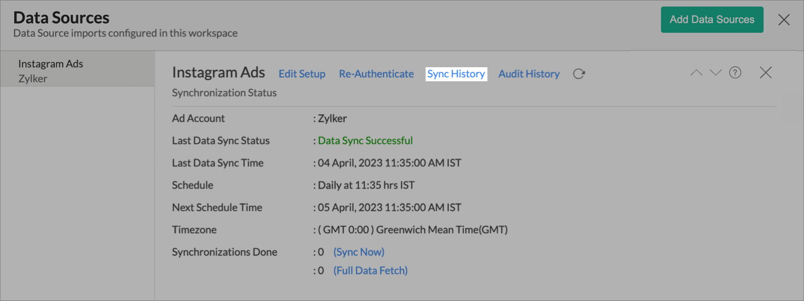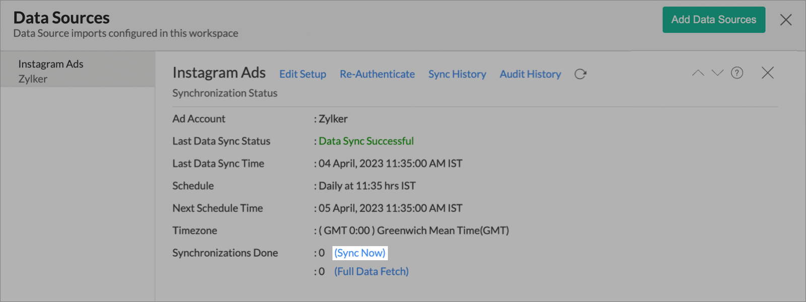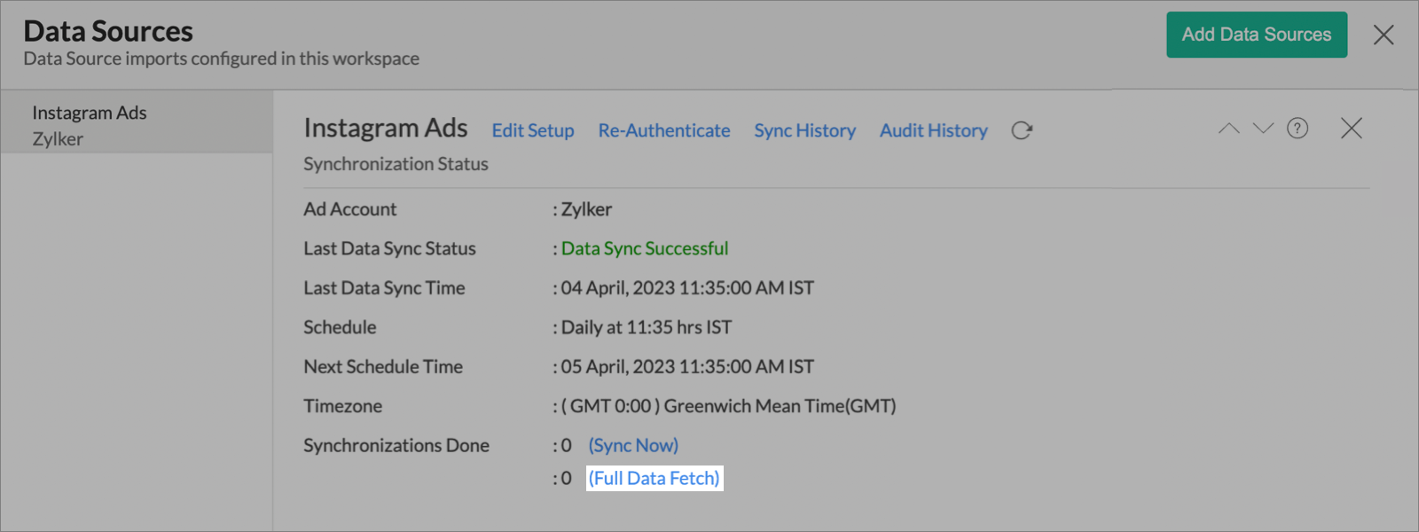 - How can I fetch the entire data from Instagram Ads into Zoho Analytics? What is the difference between Sync Now and Full Data Fetch?