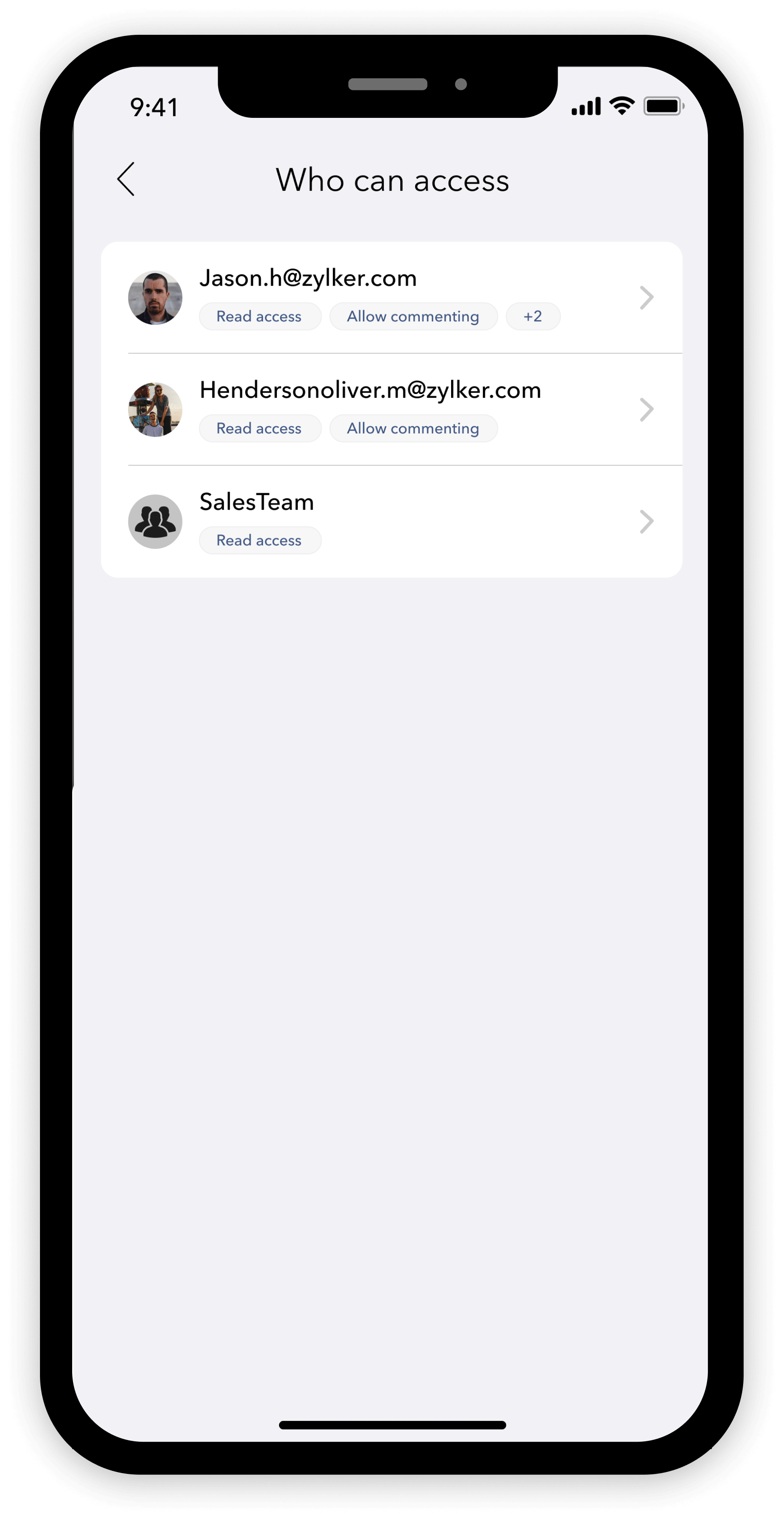 • Who can access - Tap the Who can access menu to review the list of collaborators and update their access permissions, if needed.