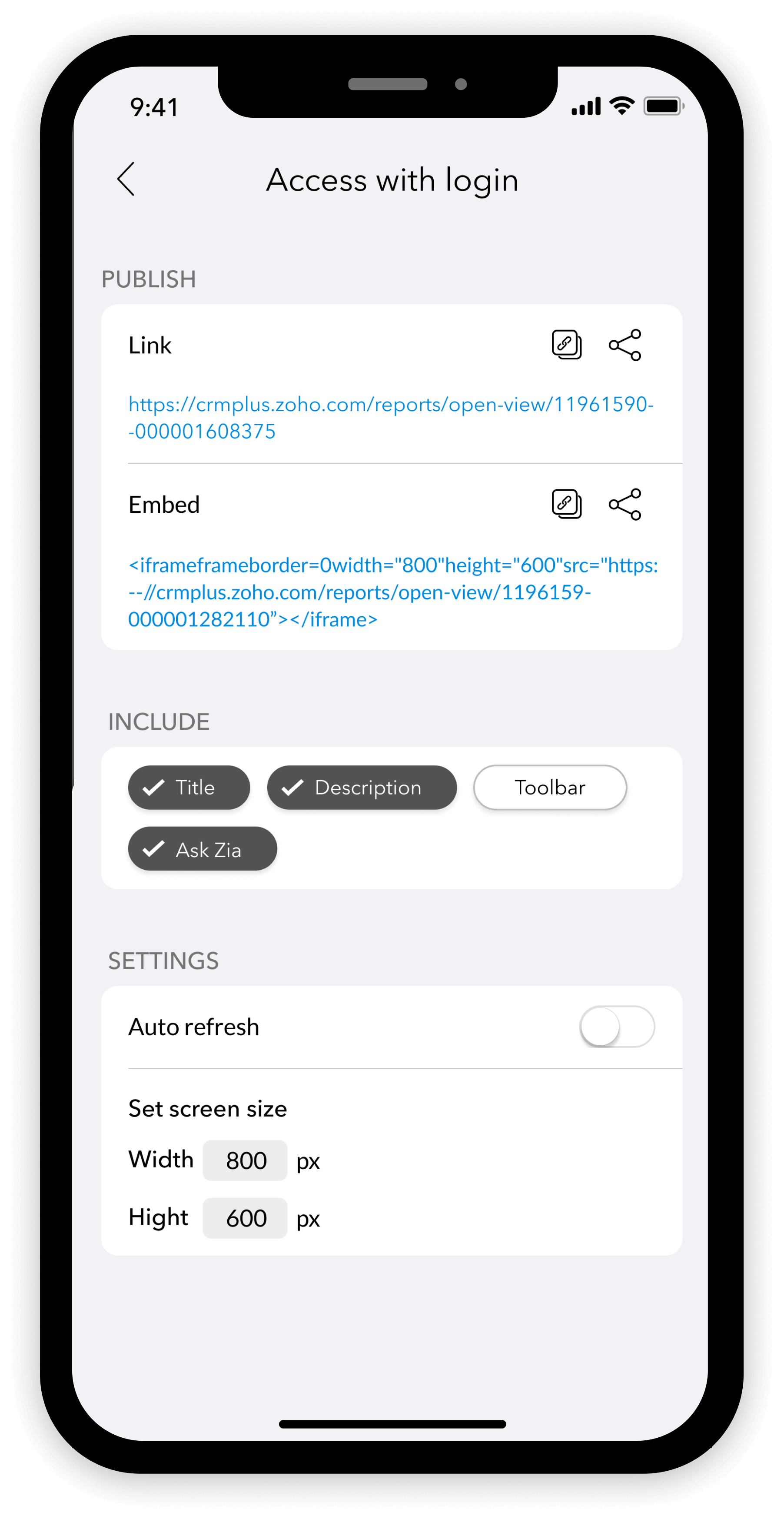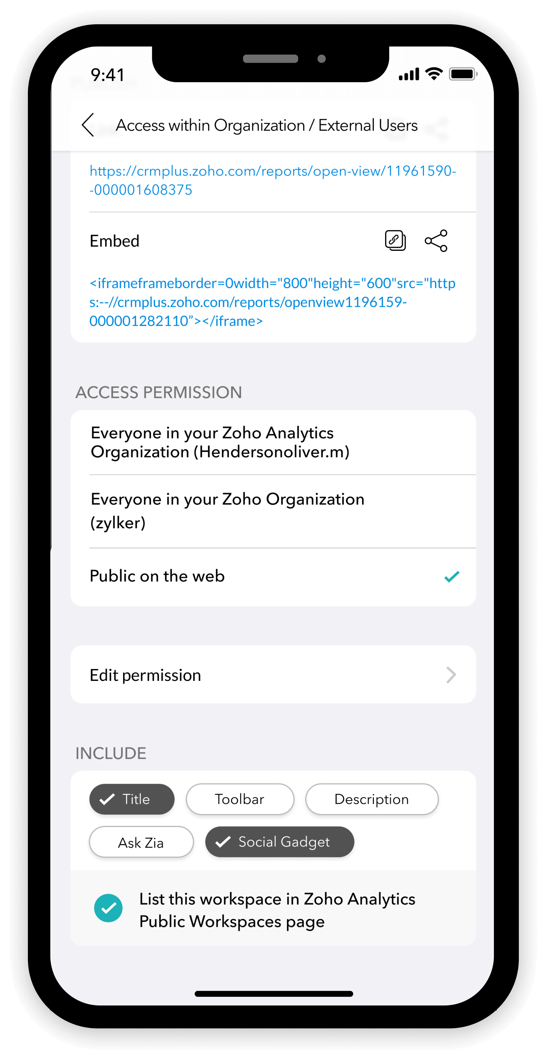 Share and Publish from Zoho Analytics - Dashboards app for iPhone