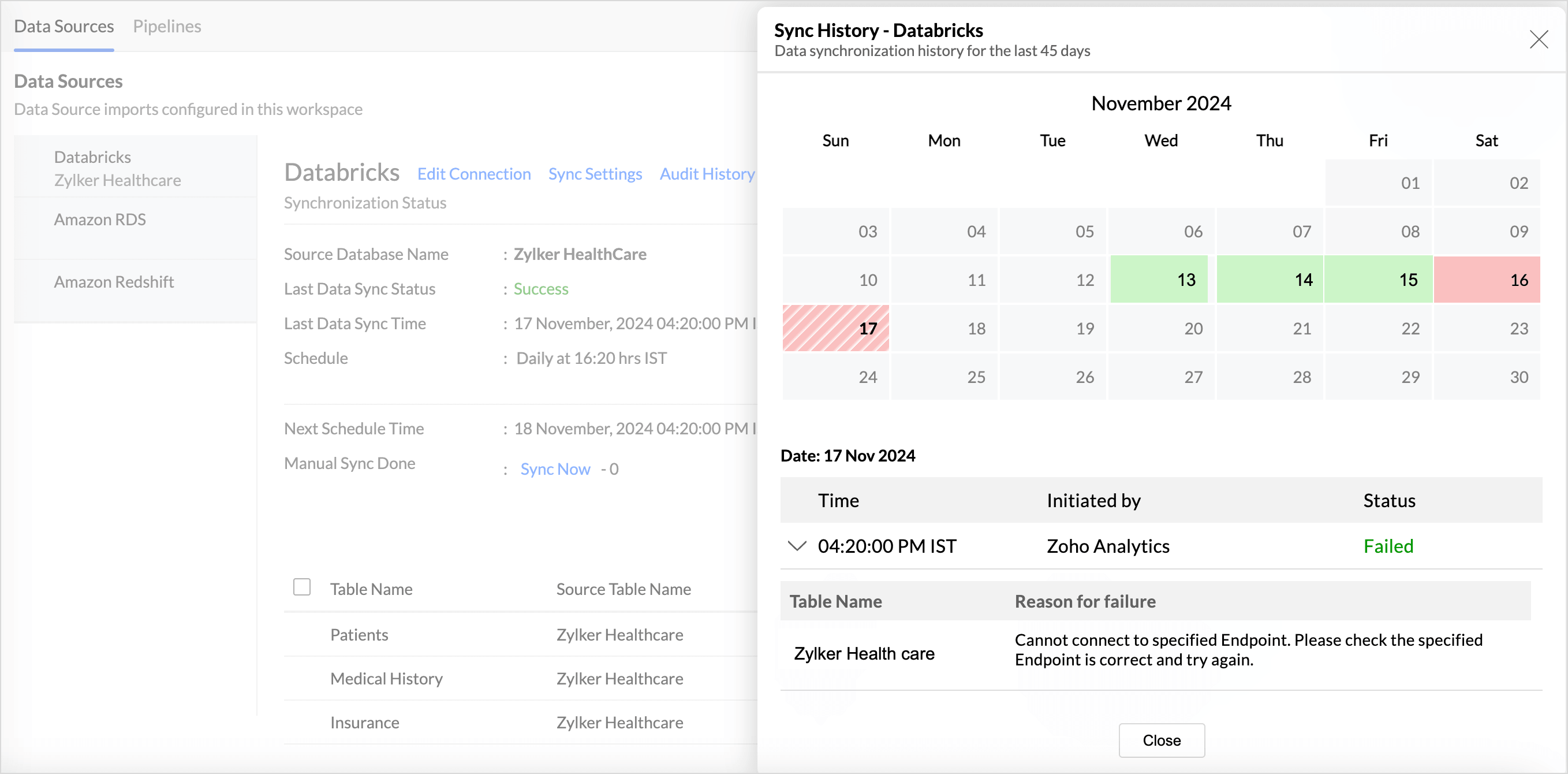 Connect Databricks with Zoho Analytics