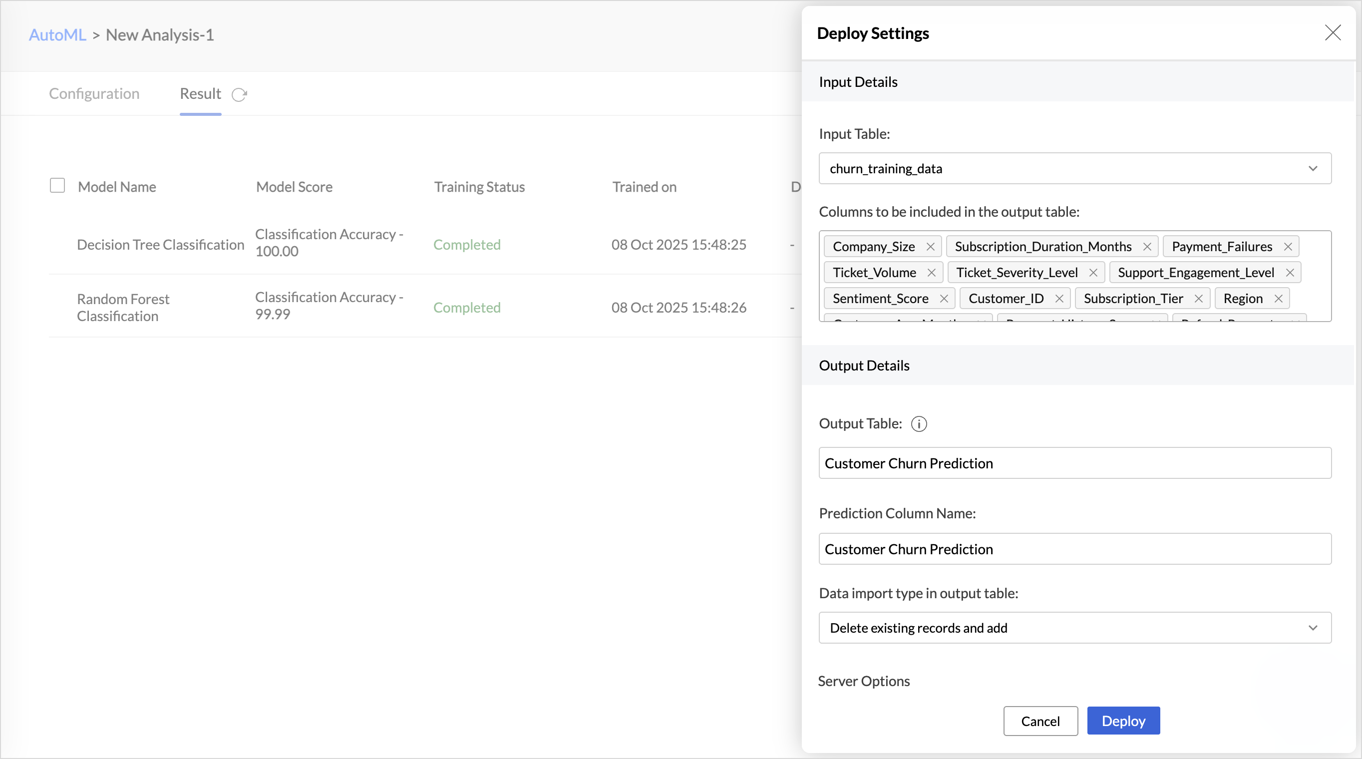• Predict Customer Churn with AutoML in Zoho Analytics