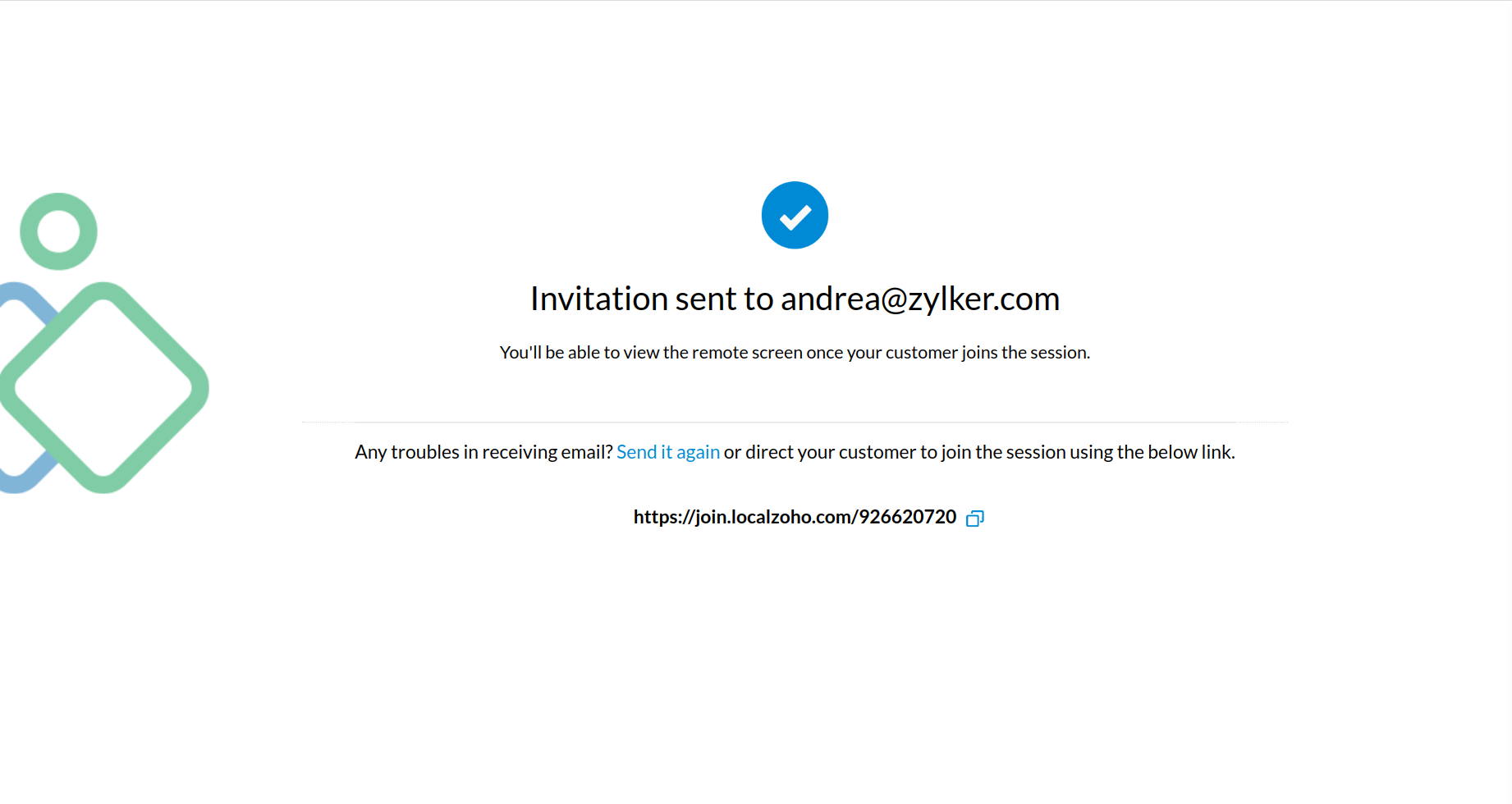 Once you click Proceed, the invite link will automatically be sent to the customer email address, as shown below.
