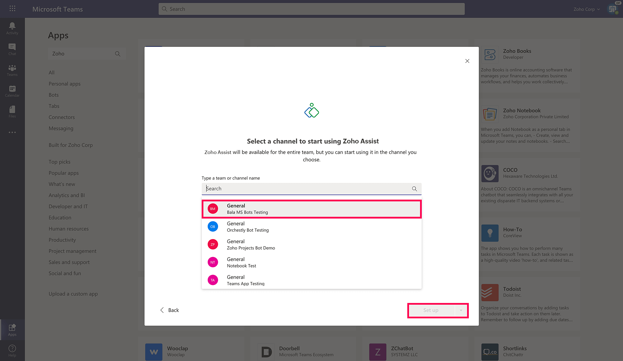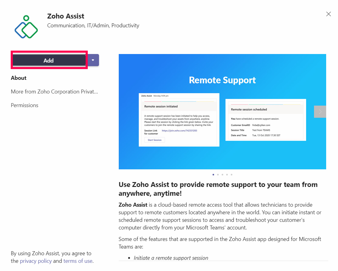 Integrate your Microsoft Teams account with Zoho Assist to support customers from a distance through web-based, on-demand remote support, and screen sharing sessions.