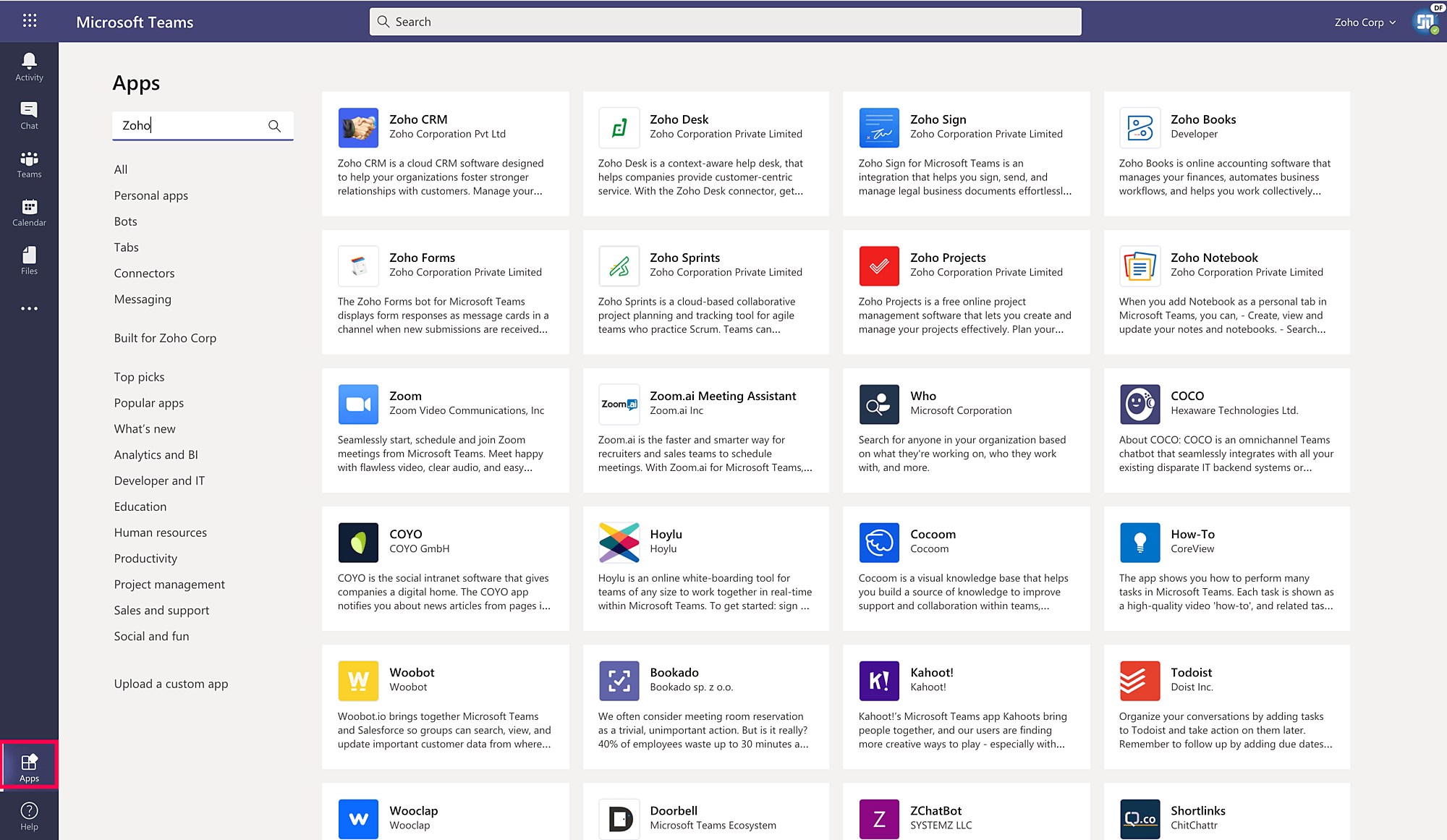 Note: To link your Zoho account with the Microsoft Teams bot, please type "authorize." You can always revert your authorization by typing "revoke."
