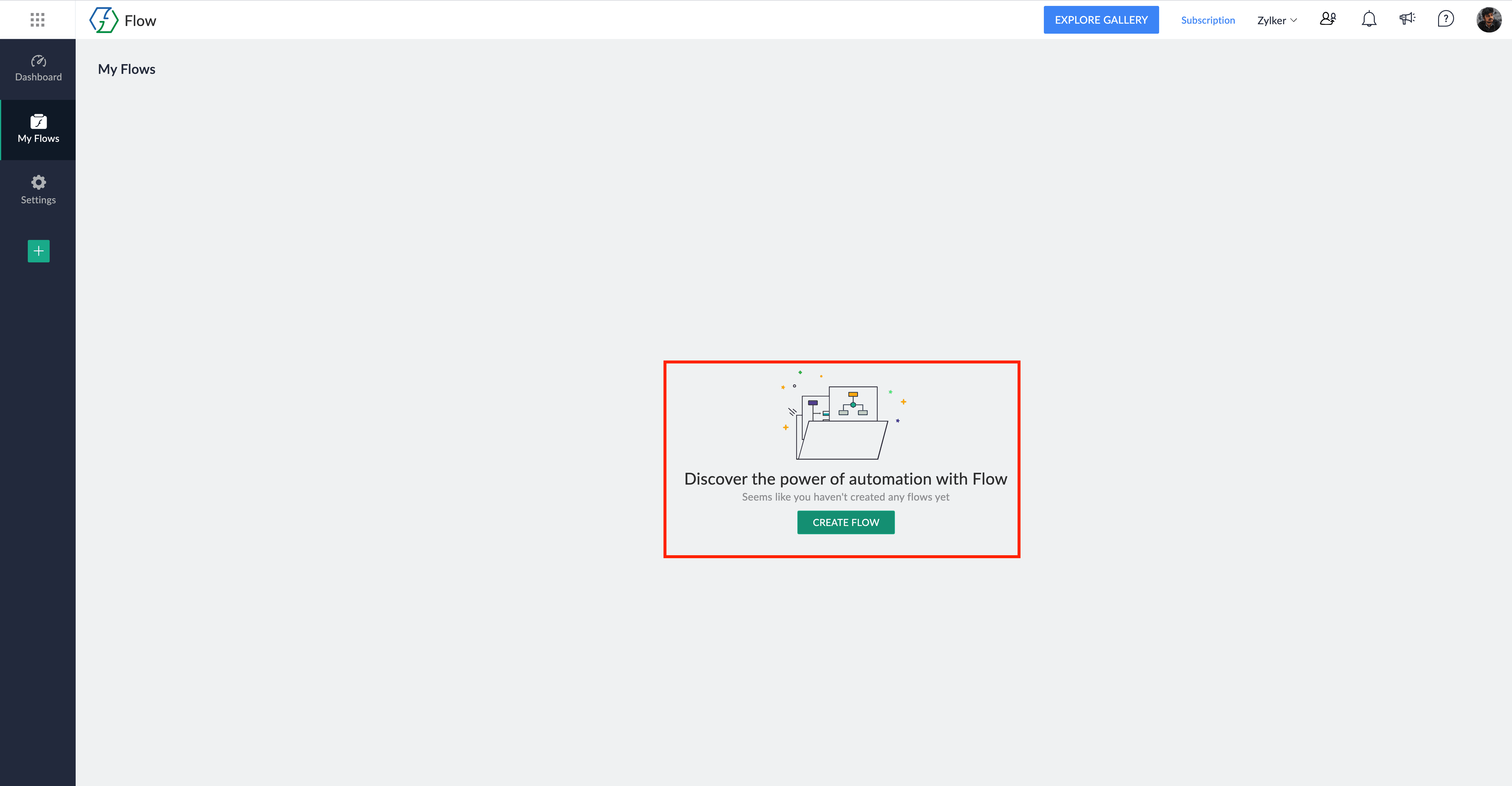 - Log in to Zoho Flow and create your own automation space by providing your organization name, selecting your time zone, and choosing the preferred date format, then click Create.
