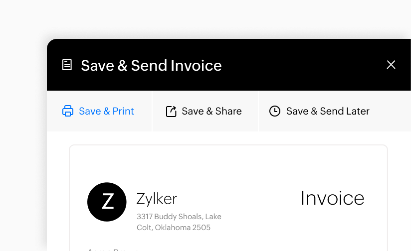 Use Zoho Invoice to easily assign different invoice templates to each customer based on their needs, without having to create them from scratch.