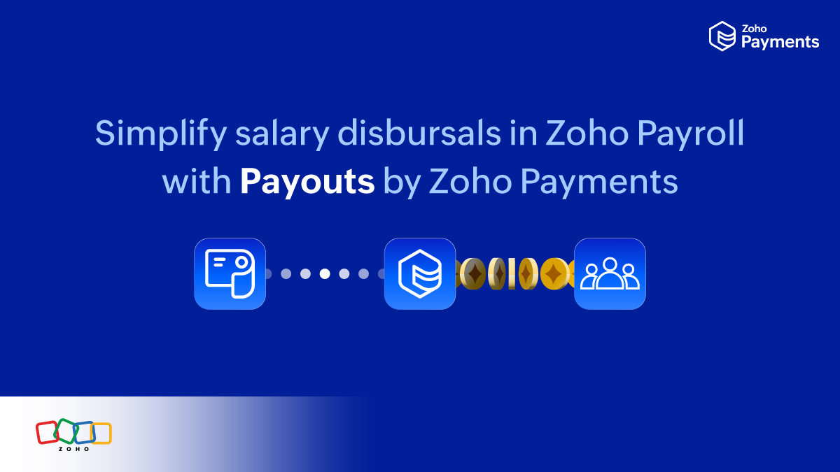 You can now move money directly from your Zoho apps, starting with Zoho Payroll. You can disburse salaries directly through Zoho Payments without leaving Zoho Payroll or logging into a separate banking portal.