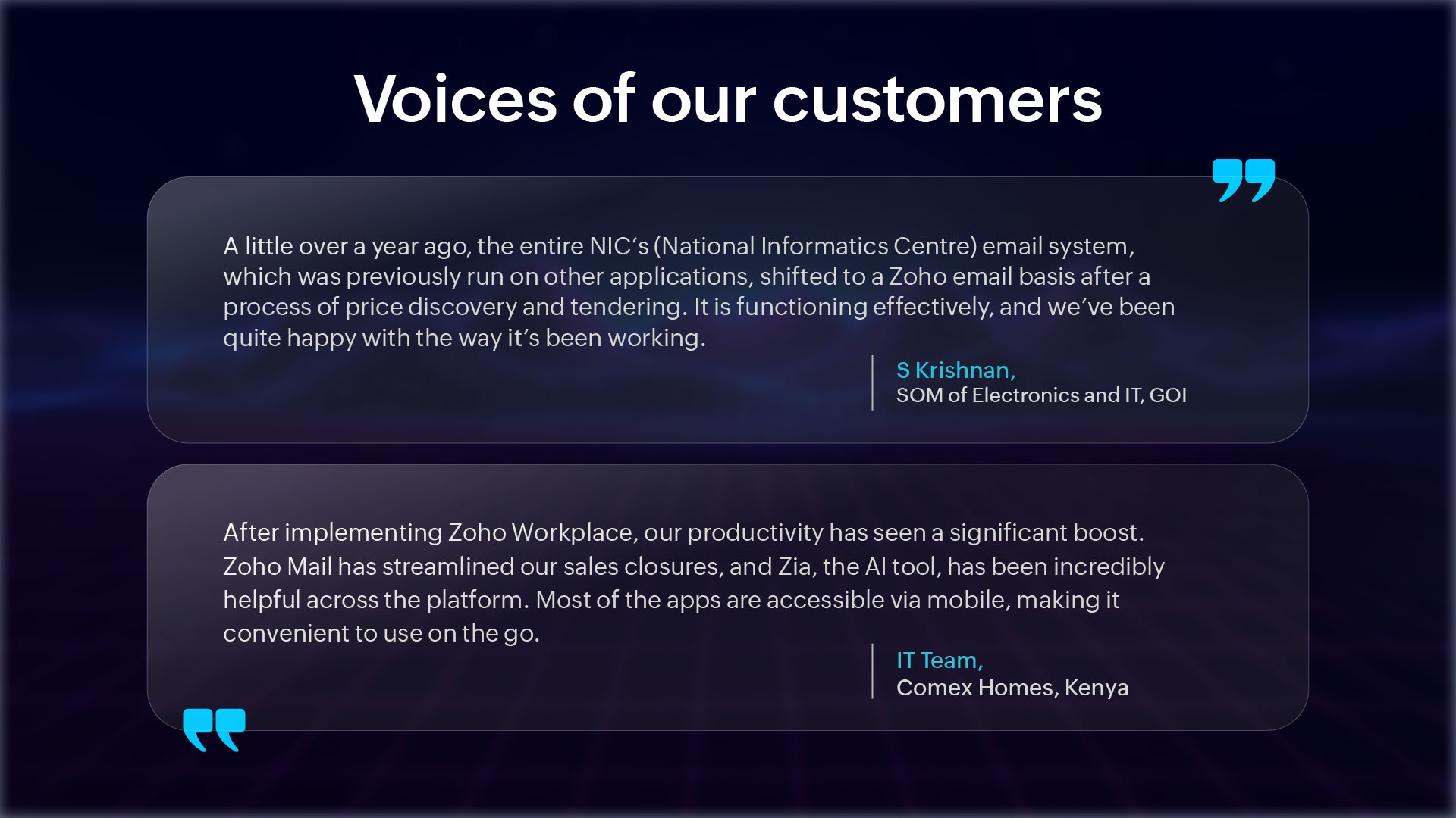 The icing on the cake? Shout-outs from government ministers recognizing Zoho Workplace's impact on national infrastructure.