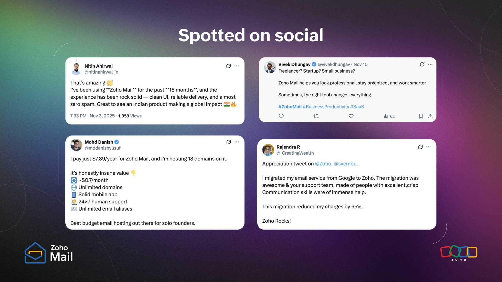 Some of the most meaningful moments this year came from you. Through the messages, stories, and feedback you shared, we got to see how Zoho Mail fits into real workflows, real teams, and real challenges.