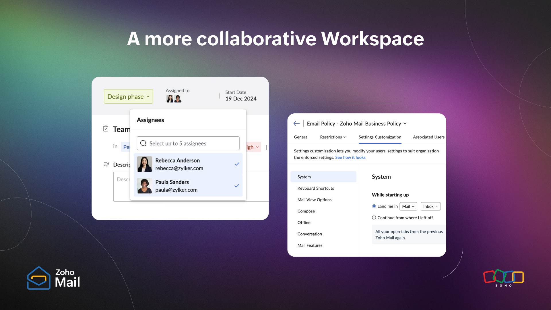 Every organization works differently, and now Zoho Mail adapts more closely to those needs. With granular settings customization, admins can: