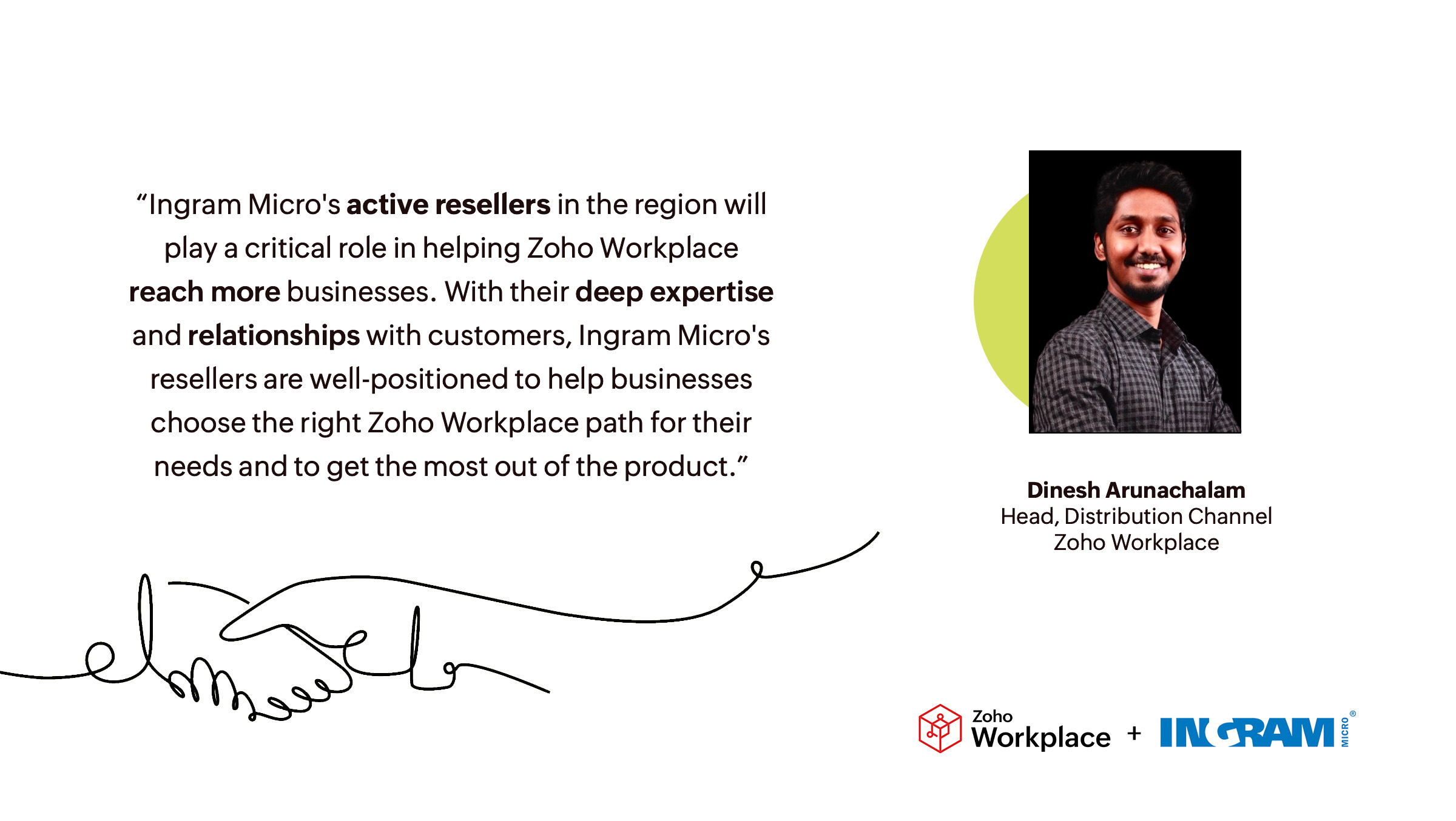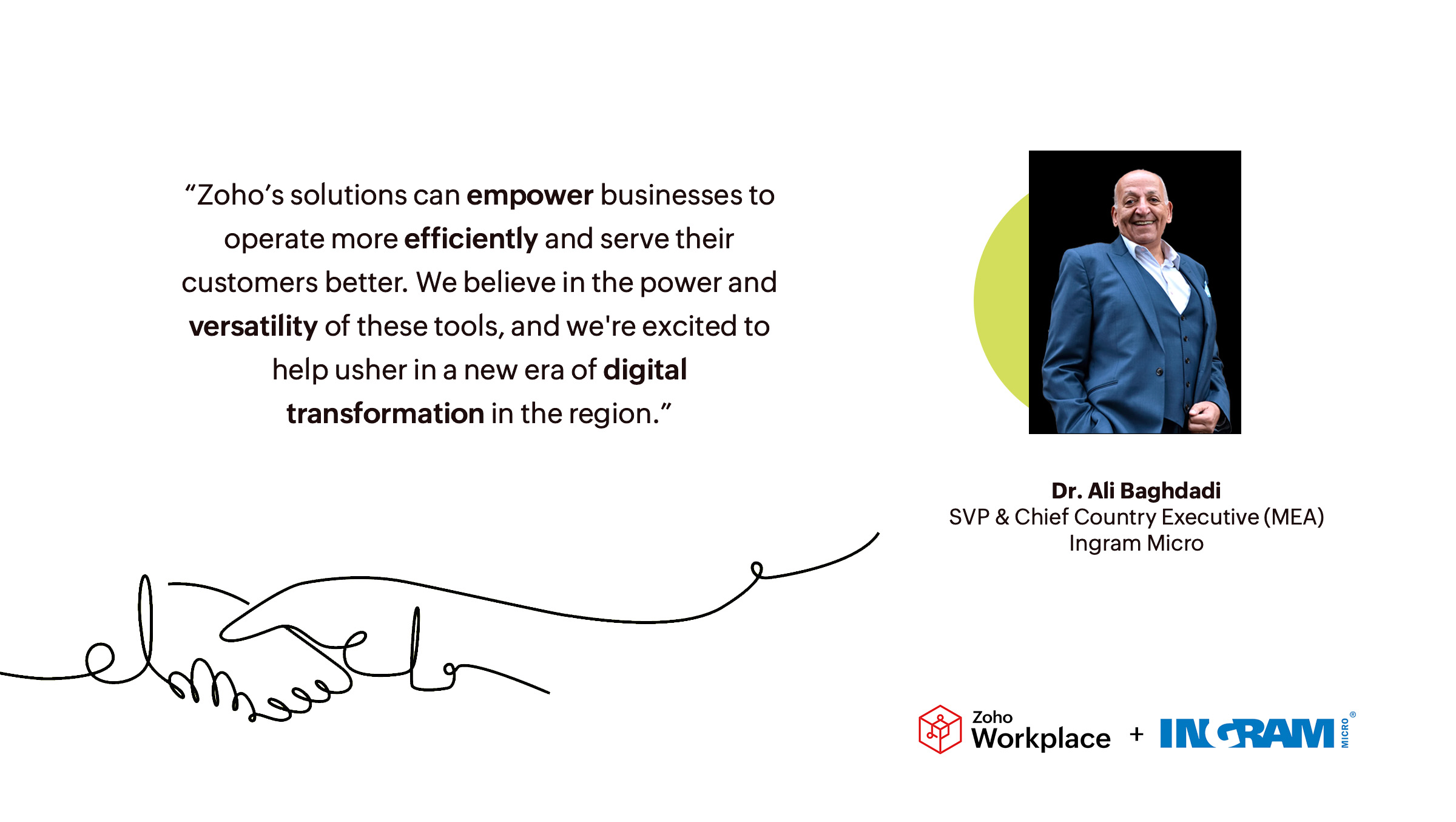 Today, we're taking our commitment to the region to the next level with our strategic collaboration with Ingram Micro. This will combine the versatility of Zoho Workplace with Ingram Micro's deep expertise in training, customer support, implementation, managed services, change-management, and more.