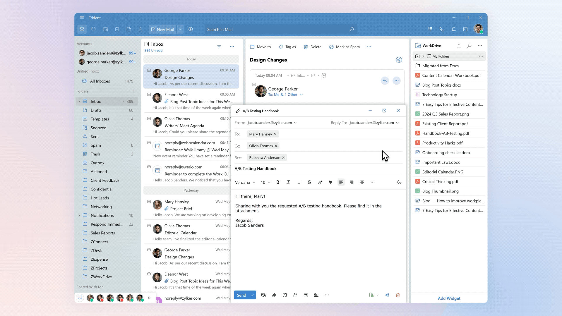 Once you try it, you won’t just leave your old email app behind—you’ll see why businesses worldwide are choosing Trident for Zoho Workplace as the future of work.