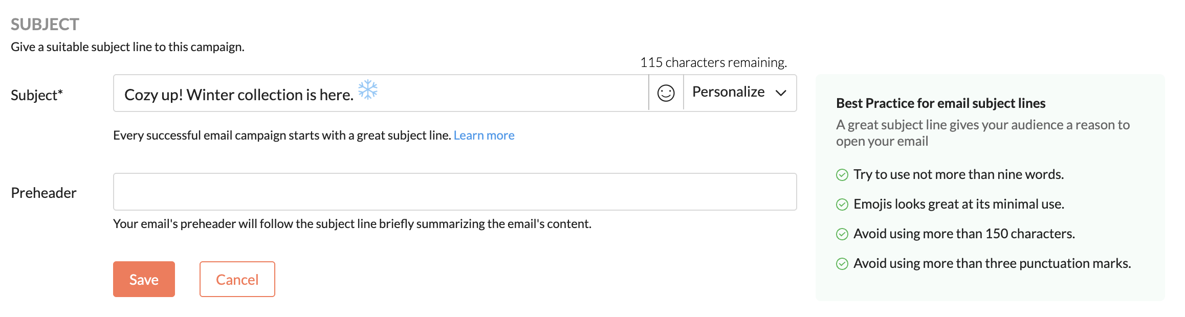 Your subject line must reflect the actual content of the email. When subscribers know they’re getting what they expect, they’re more likely to engage.