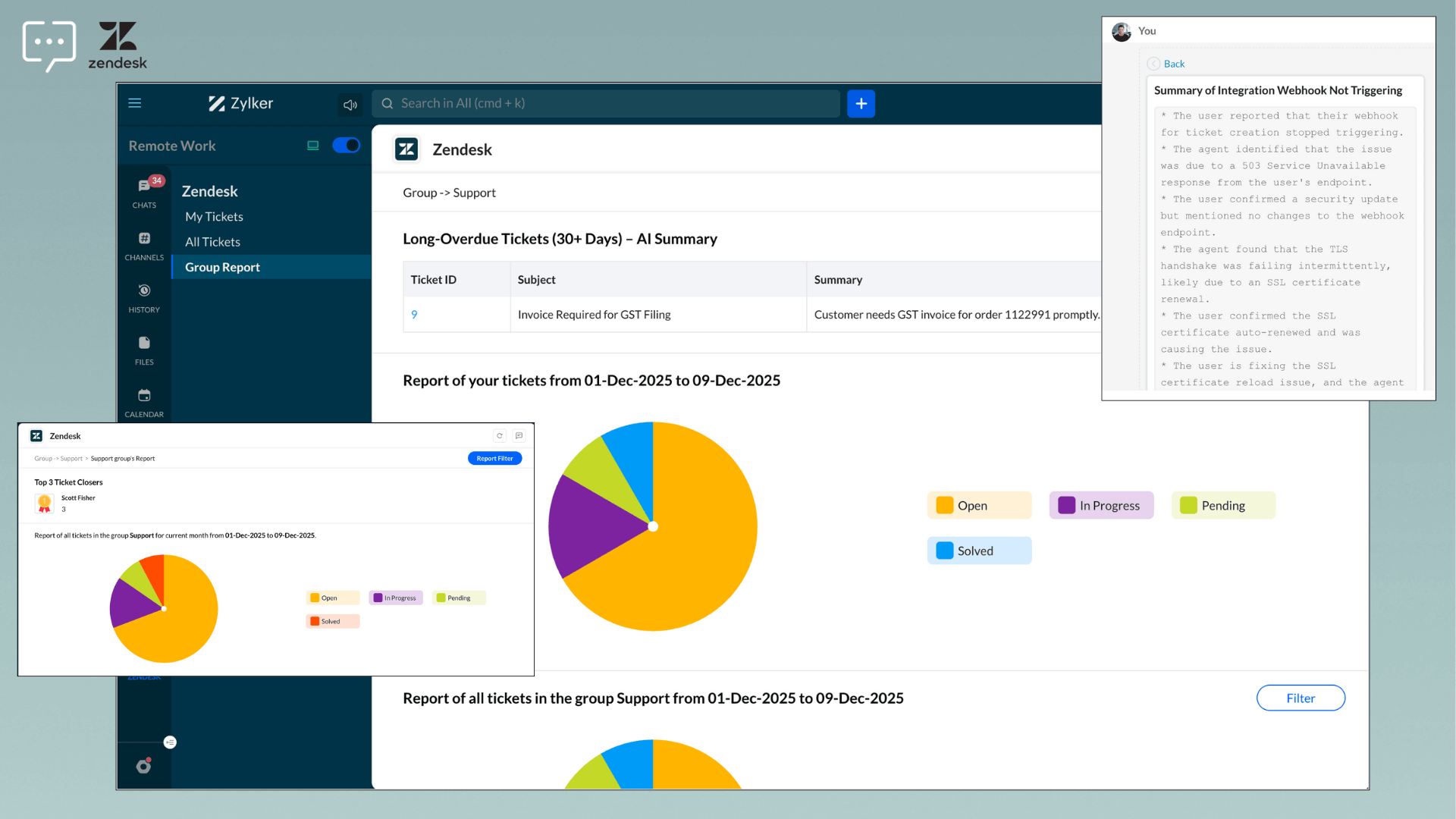 IntegrationsWith Zendesk integration in Cliq, you can now get: