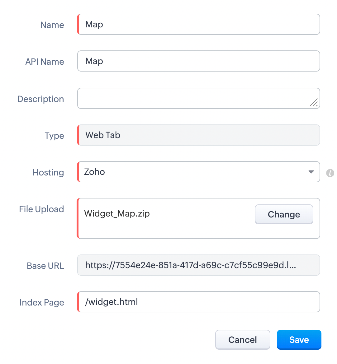 Your application's static contents can be hosted using Zoho. With the help of Zoho's CLI, you can create, develop, test and package your widgets. Furthermore, running the widgets through internal hosting doesn't require you to have your application elsewhere. It requires uploading the files of the application in zip format. In general, for applications that are created personally by the User can be added as a widget using Internal hosting.
