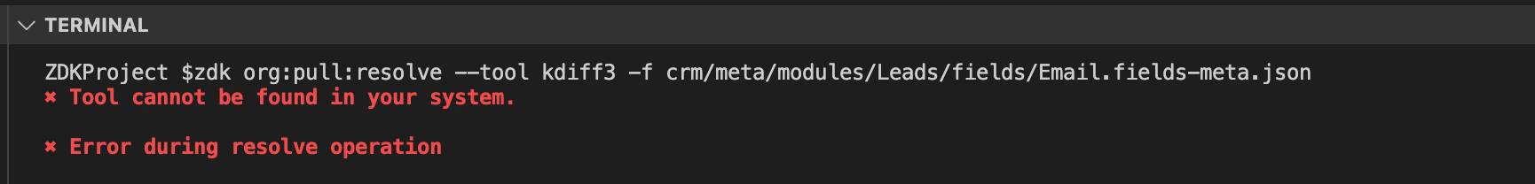 Resolution: Check whether CRM directory is present and if needed execute zdk pull command again.