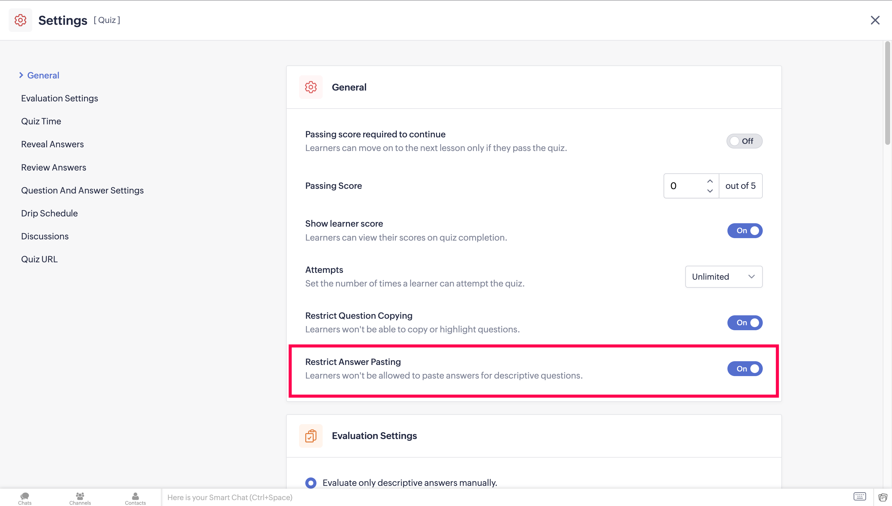 NewUpdatesYou can now prevent your learners from copy-pasting their descriptive answers in quizzes in Zoho Learn LMS.