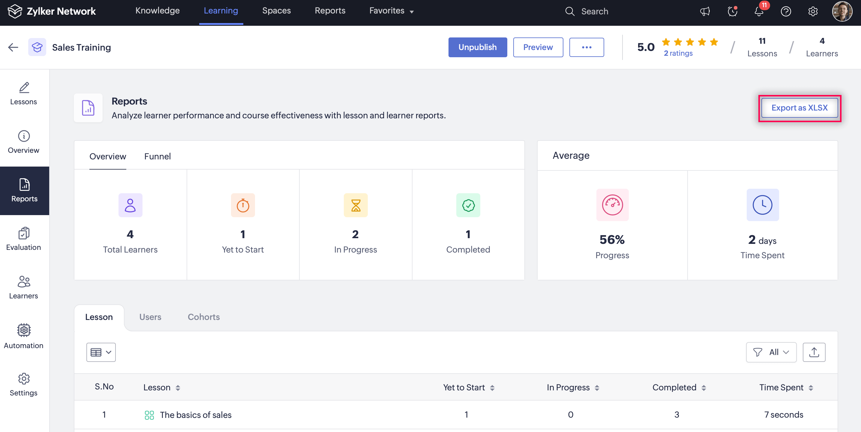 New FeatureAnalyzing learner progress just got easier! You can now export consolidated learner reports as XLSX files and access them anytime you want.