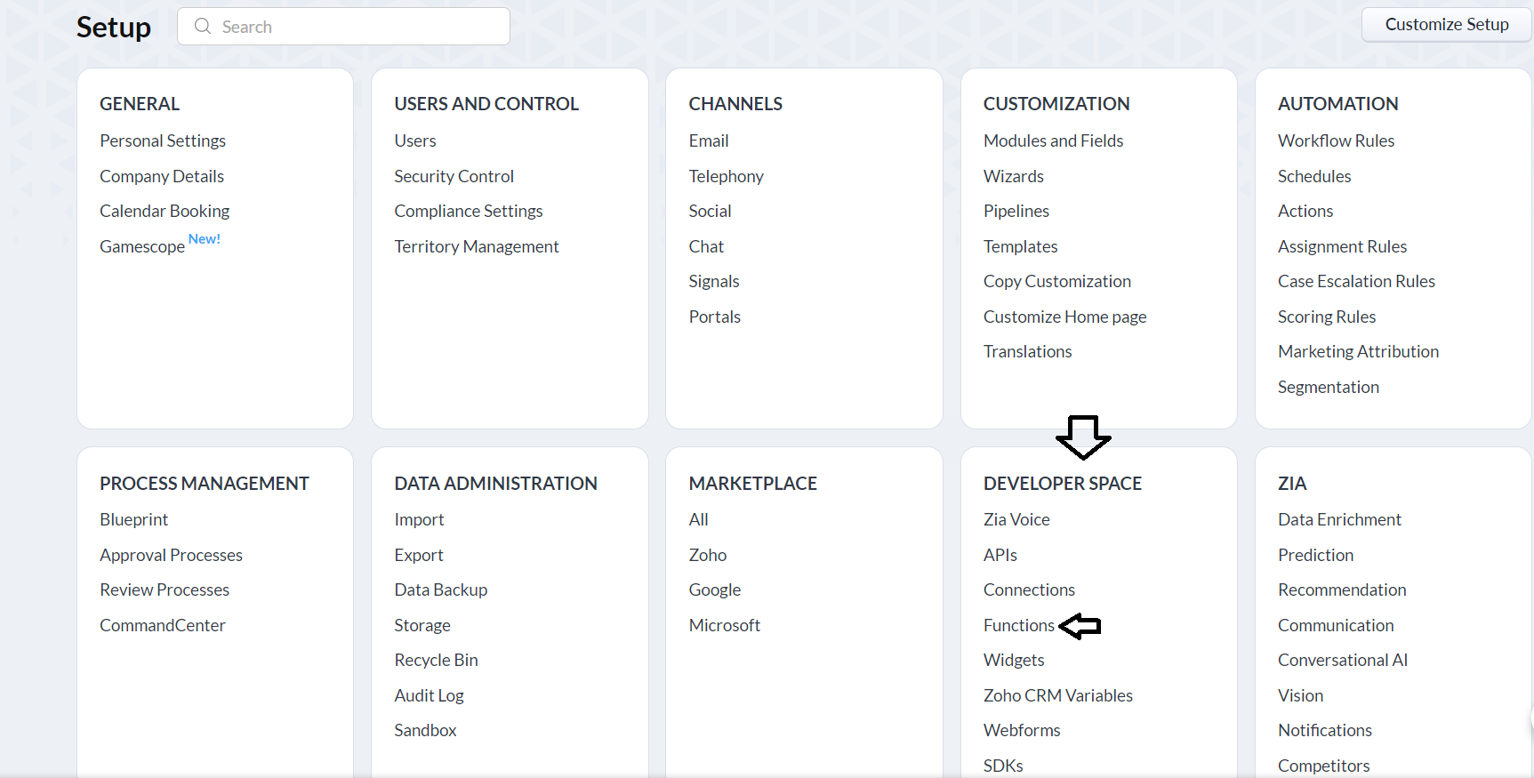 How to use Zoho CRM functions as callbacks, using Webhooks in ZohoSign?