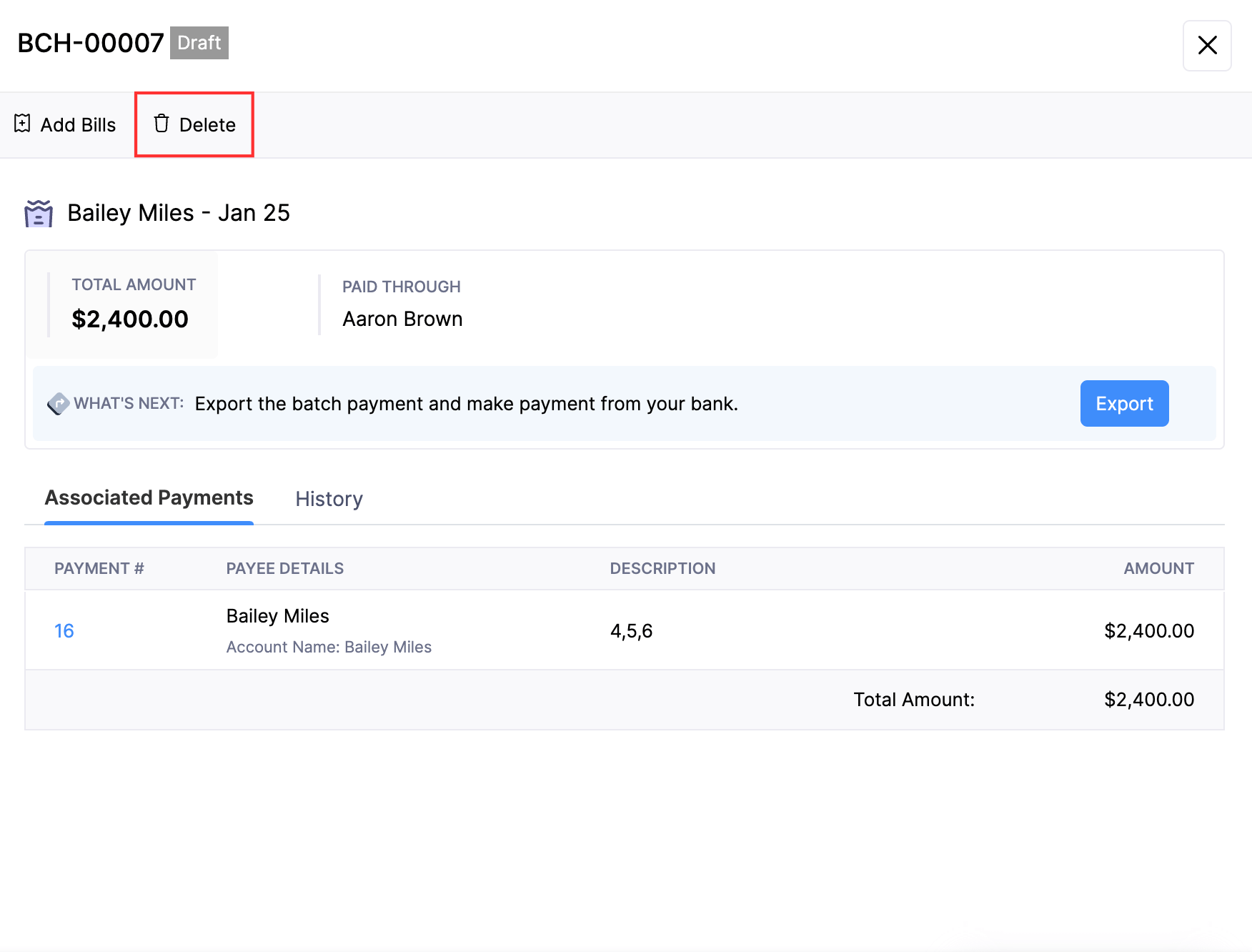You can add more bills to a batch if you missed to add them when creating it. Here’s how: